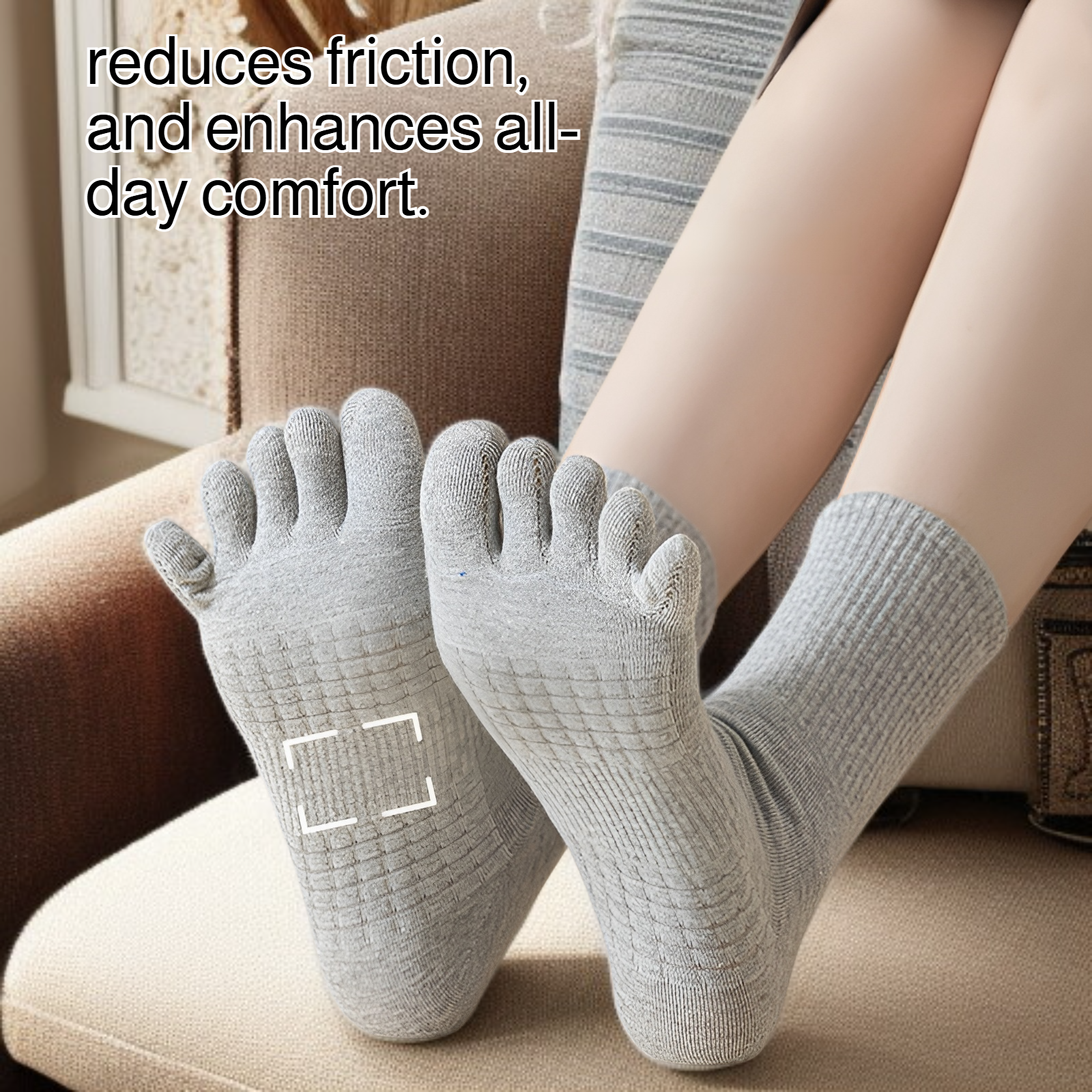 ● Designed with individual five-toe compartments to promote natural toe movement, reduce friction, and enhance overall foot comfort throughout the day.