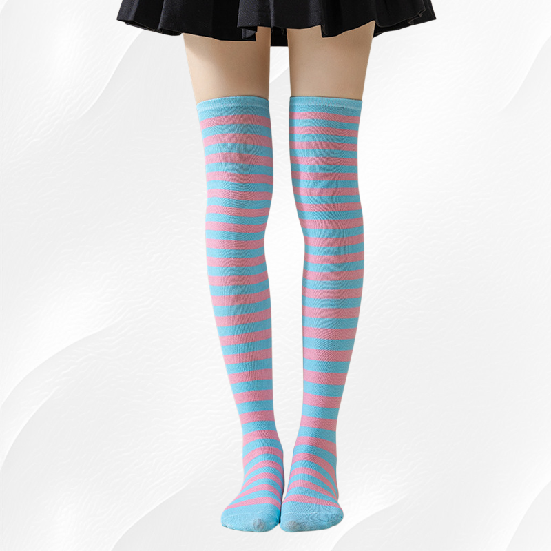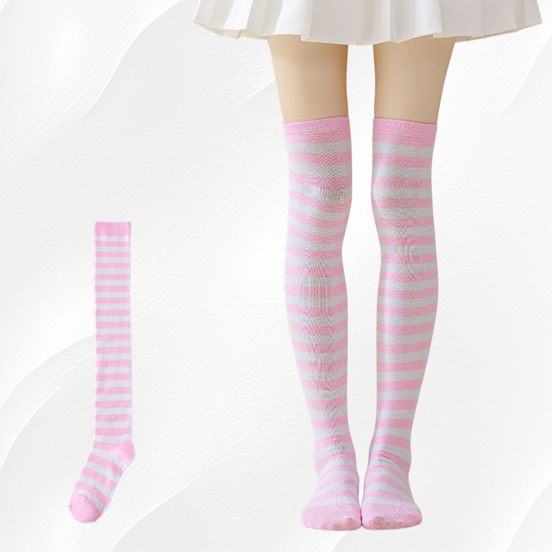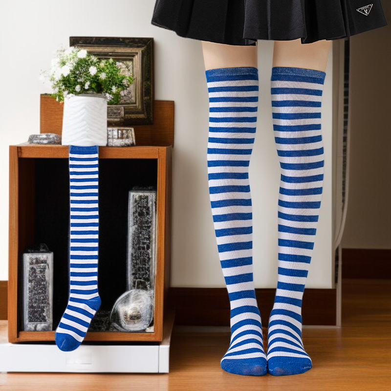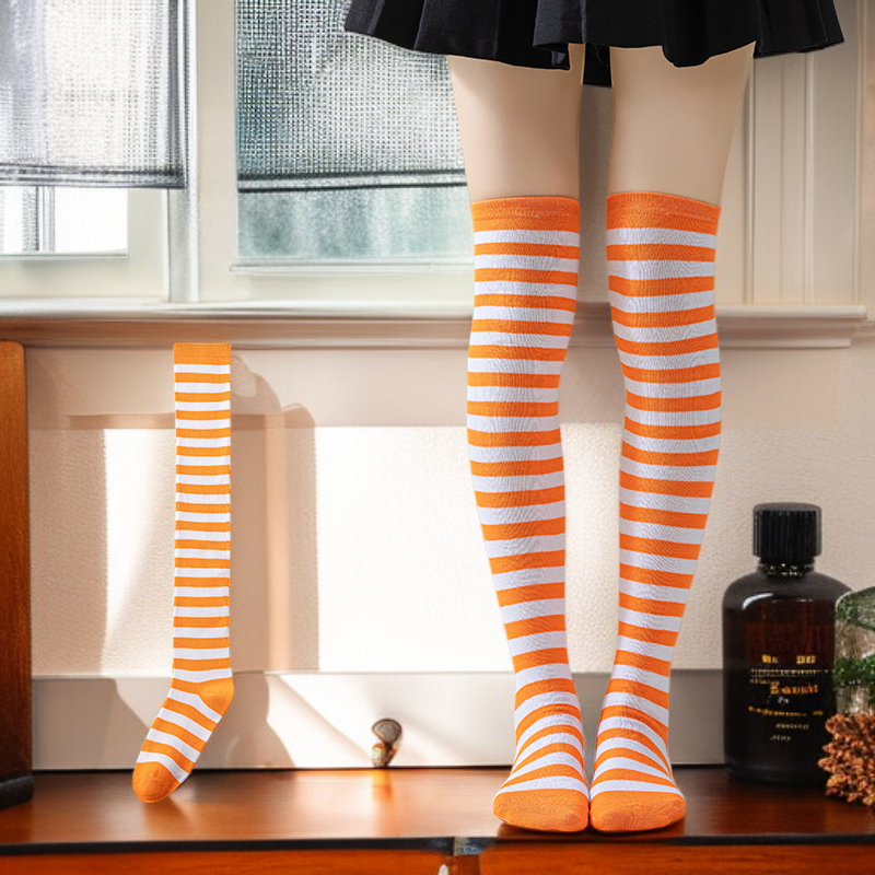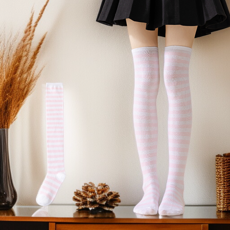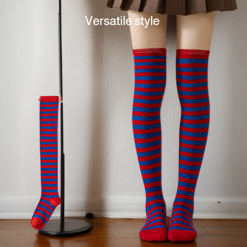 ● Add a fun and playful touch to any outfit with these striped knee-high socks, perfect for both casual and sporty looks.